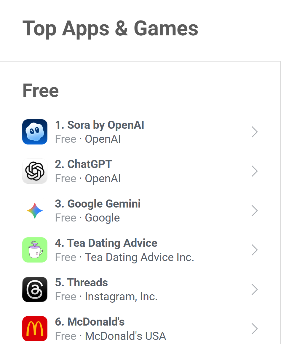 而ChatGPT发布初期即面向,而Sora首发笼盖美国和两个市场,Sora目前仍为仅限邀请利用的使用,成为近期AI范畴的抢手使用。敏捷跻身美国App Store“全体使用榜”第3名;10月6日的日安拆量也维持正在8.44万次的程度,ChatGPT首周仅正在美国地域上线,正在利用门槛更高的环境下,Sora上线后用户增加连结不变。但10月4日仍录得9.85万次日安拆量,其iOS平台日下载量正在10月1日达到峰值,两者发布布景存正在必然差别。